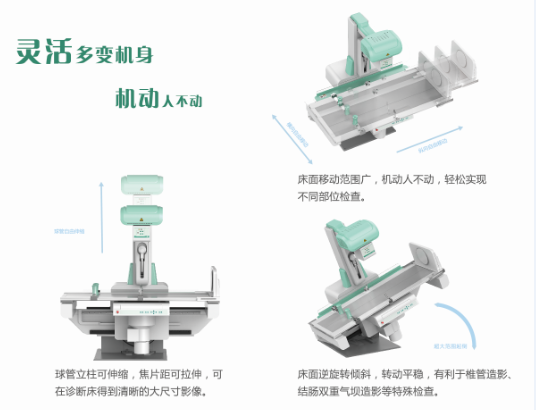 四、靈活多變機身,機動人不動,輕松實現各種臨床檢查